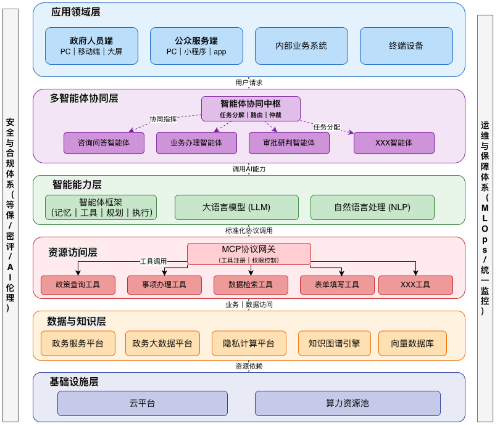 (二)政务智能体“六横两纵”架构体系